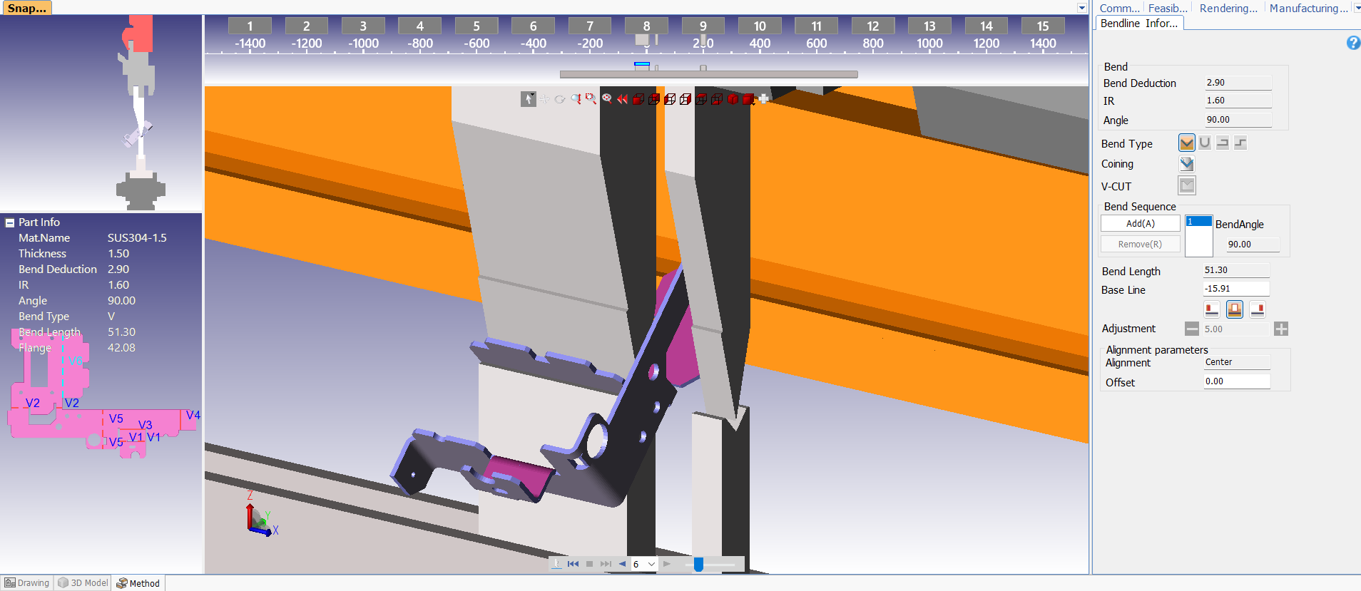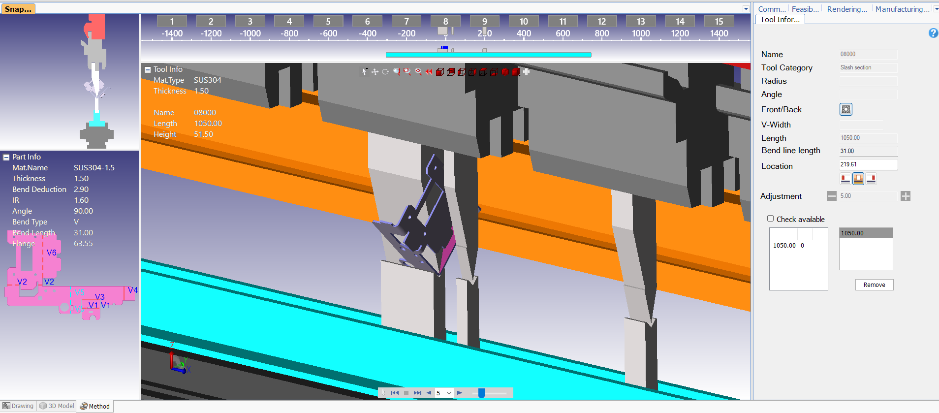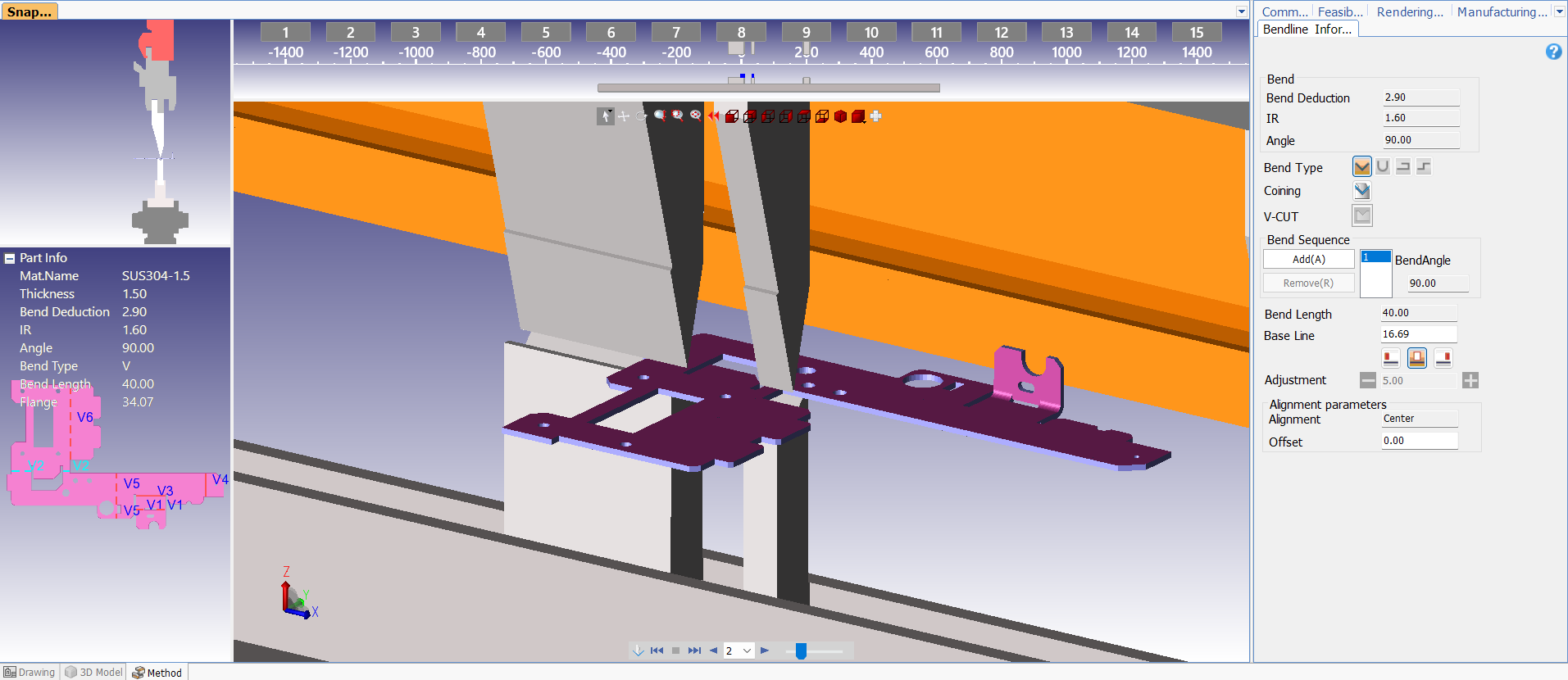 VPSS 4ie Bend ohjelmistopaketti särmäyspuristimen etäohjelmointiin ja särmättävien kappaleiden 3D mallien ja 2D levityskuvien tarkasteluun venymävirheiden yms. korjaamiseksi.