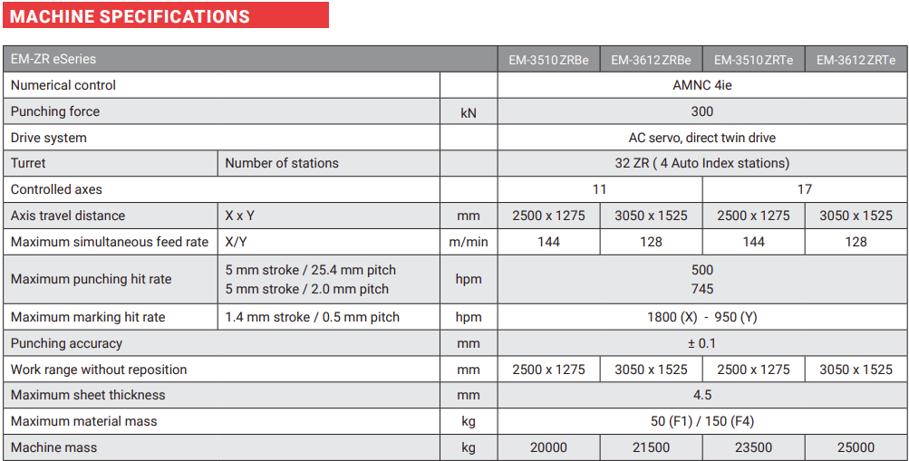 Uuden sukupolven EM-sarjan levytyökeskus 33-paikkaisella työkalujen puskurivarastolla ja nopealla automaattisella työkalunvaihdolla. Energiatehokkaiden servokäyttöjen avulla tämä innovatiivinen kone yhdistää nopean tuotannon, vaikuttavan luotettavuuden ja lukuisat kustannus- ja prosessinparannukset. Muita tuottavuutta parantavia ominaisuuksia ovat naarmuton levyntyöstö, ID Tooling työkalujärjestelmä ja laaja valikoima automaatioratkaisuja. Uusi teknologia mahdollistaa myös muokkauksien ja vetojen tekemisen alaspäin ilman ongelmia.